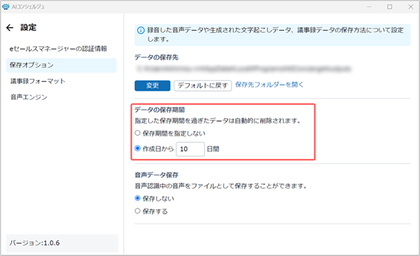 今後も音声データの保存を希望される場合は、「保存する」へ変更を行ってください。