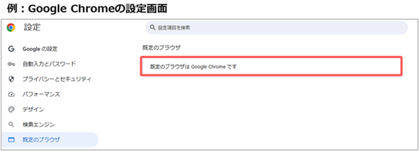 利用中のブラウザが「既定のブラウザ」に設定されているかは、OSまたはブラウザの設定画面からご確認ください。