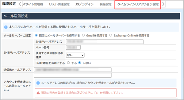 ネットワークやセキュリティの設定をご確認ください。 - [タイムラインリアクションの有効化]を[有効]に設定した場合、スマートフォンアプリに反映させるには、アプリへの再ログインが必要です。