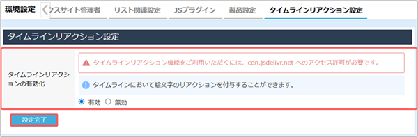| 有効 | 社員全員がタイムラインリアクション機能を利用できるようになります。 |
