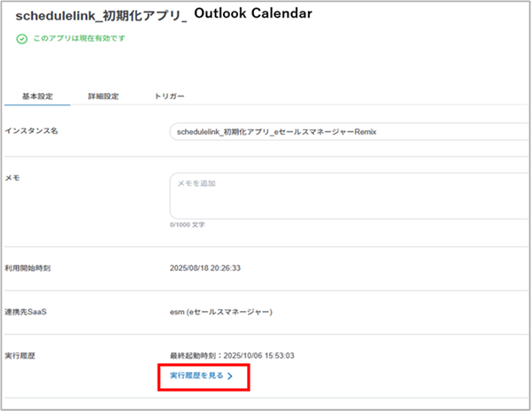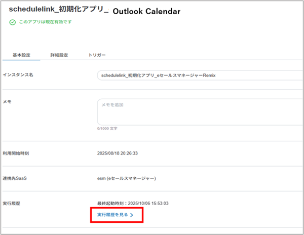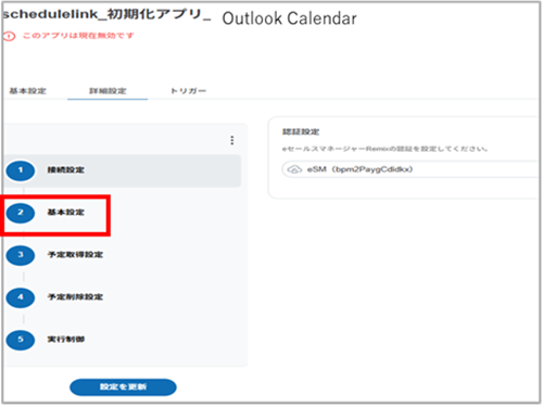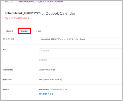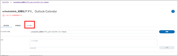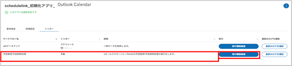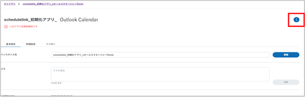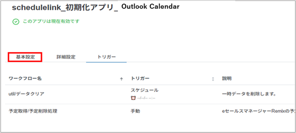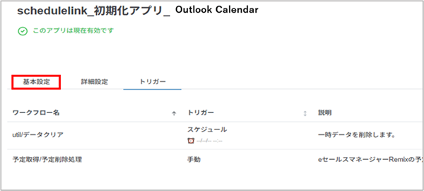 2. 「schedulelink_初期化アプリ_Outlook Calendar」の>を選択します。