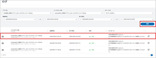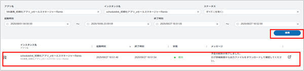 14. [検索]をクリックし、検索結果から予定の取得完了ログを選択します。