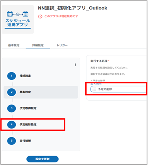 | 実行する処理 | 「予定の削除」に変更します。 |