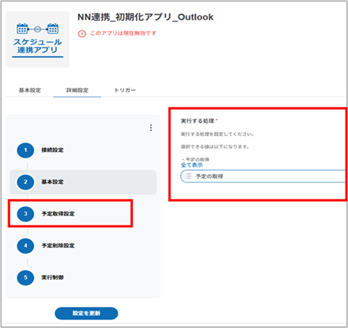 5. 各項目を入力し、[予定取得設定]をクリックします。