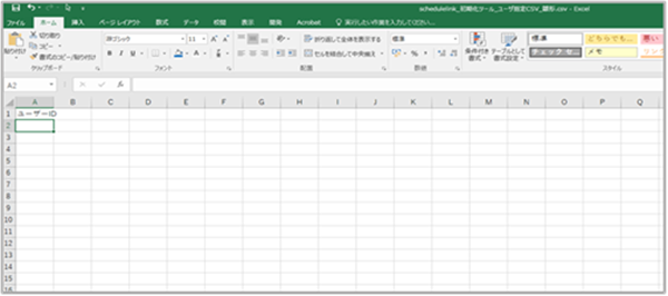 2. 「schedulelink_初期化ツール_ユーザ指定CSV_雛形」をExcelなどで開きます。