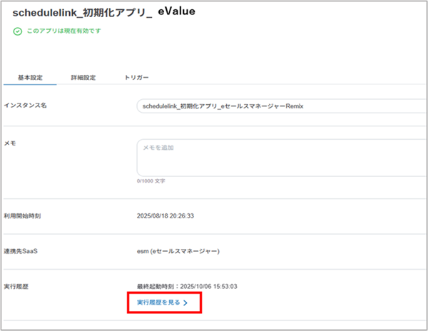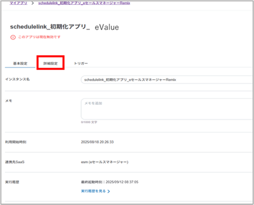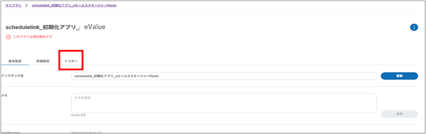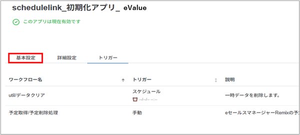 2. 「schedulelink_初期化アプリ_eValue」の>を選択します。