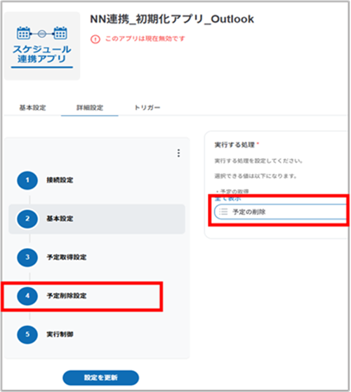 5. 設定を変更して[予定削除設定]を選択します。