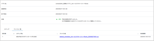 - 条件に合致するスケジュールデータが削除候補として出力対象となります。