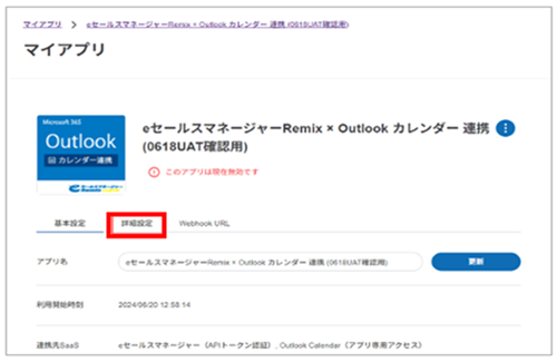 アプリの状態が有効化に変更されます。